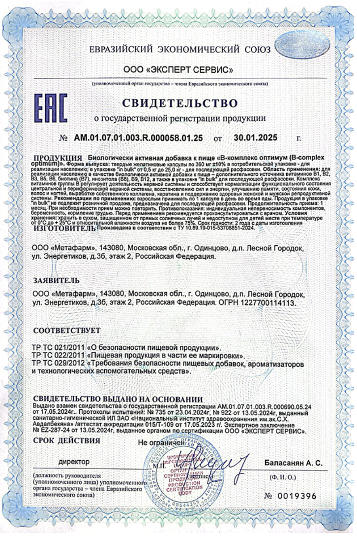 Государственная регистрация БАД (СГР) является основным разрешительным документом, подтверждающим, что продукт прошёл проверку безопасности и подлинности и может легально находиться в обороте на территории Российской Федерации.